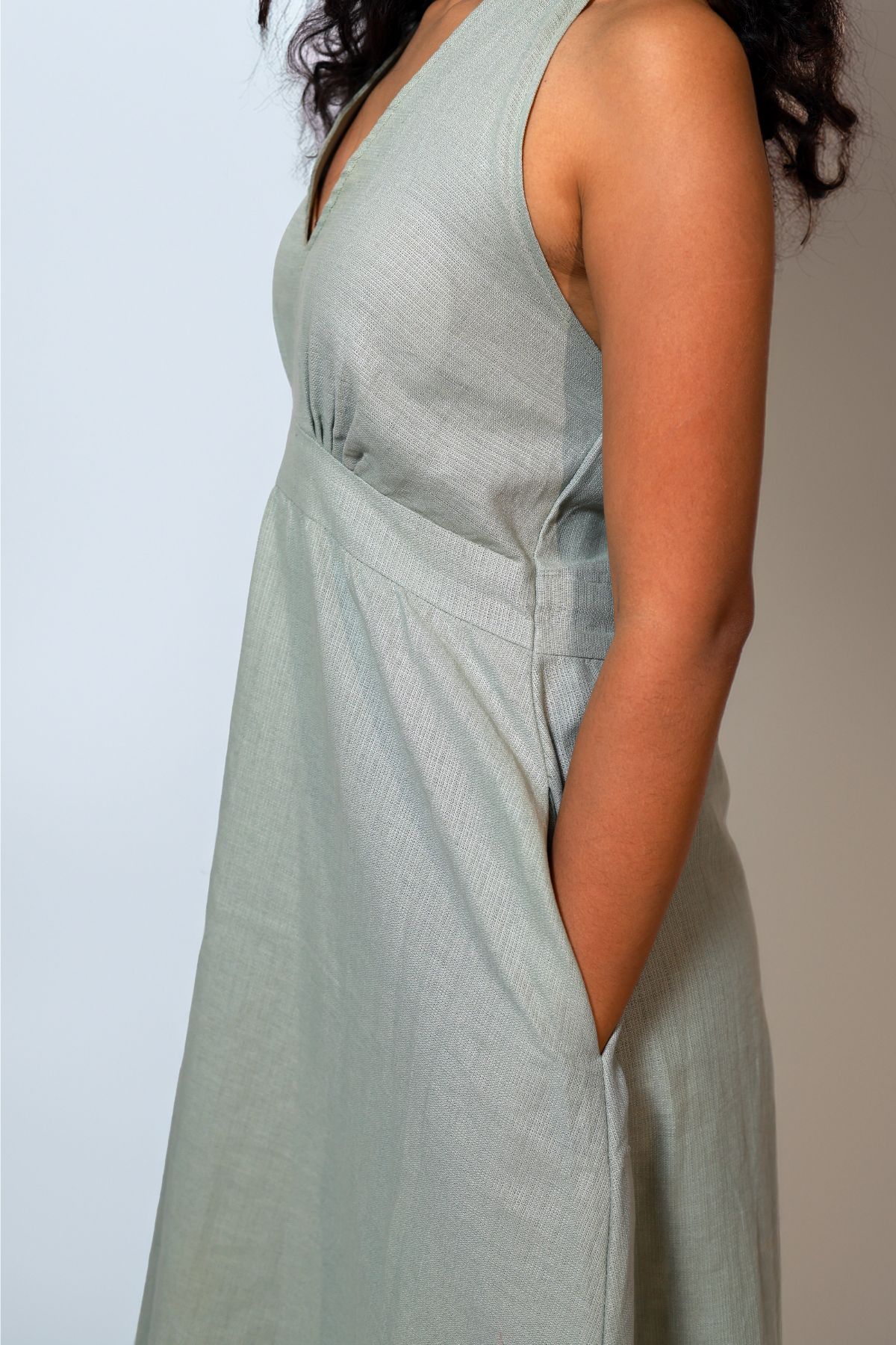 Crafted from premium linen fabric for a comfortable and airy feel. The halter neckline adds a modern and chic touch, making it a perfect pick for casual outings or relaxed summer days.